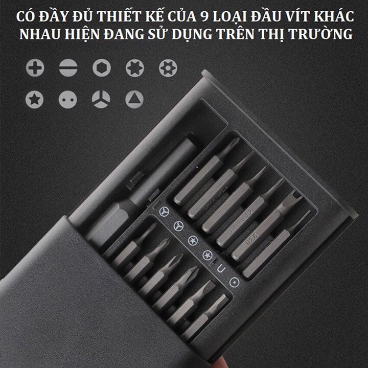 Bao gồm 24 đầu tua vít với kích cỡ, kiểu dáng rất đa năng - cho nhiều mục đích khác nhau: