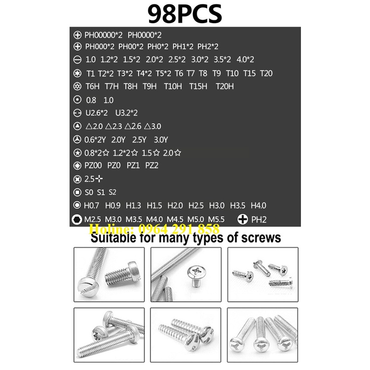 Bộ tua vít này được sản xuất để sửa chữa và bảo trì các sản phẩm điện tử và dụng cụ chính xác như điện thoại di động, đồng hồ và thiết bị gia dụng.