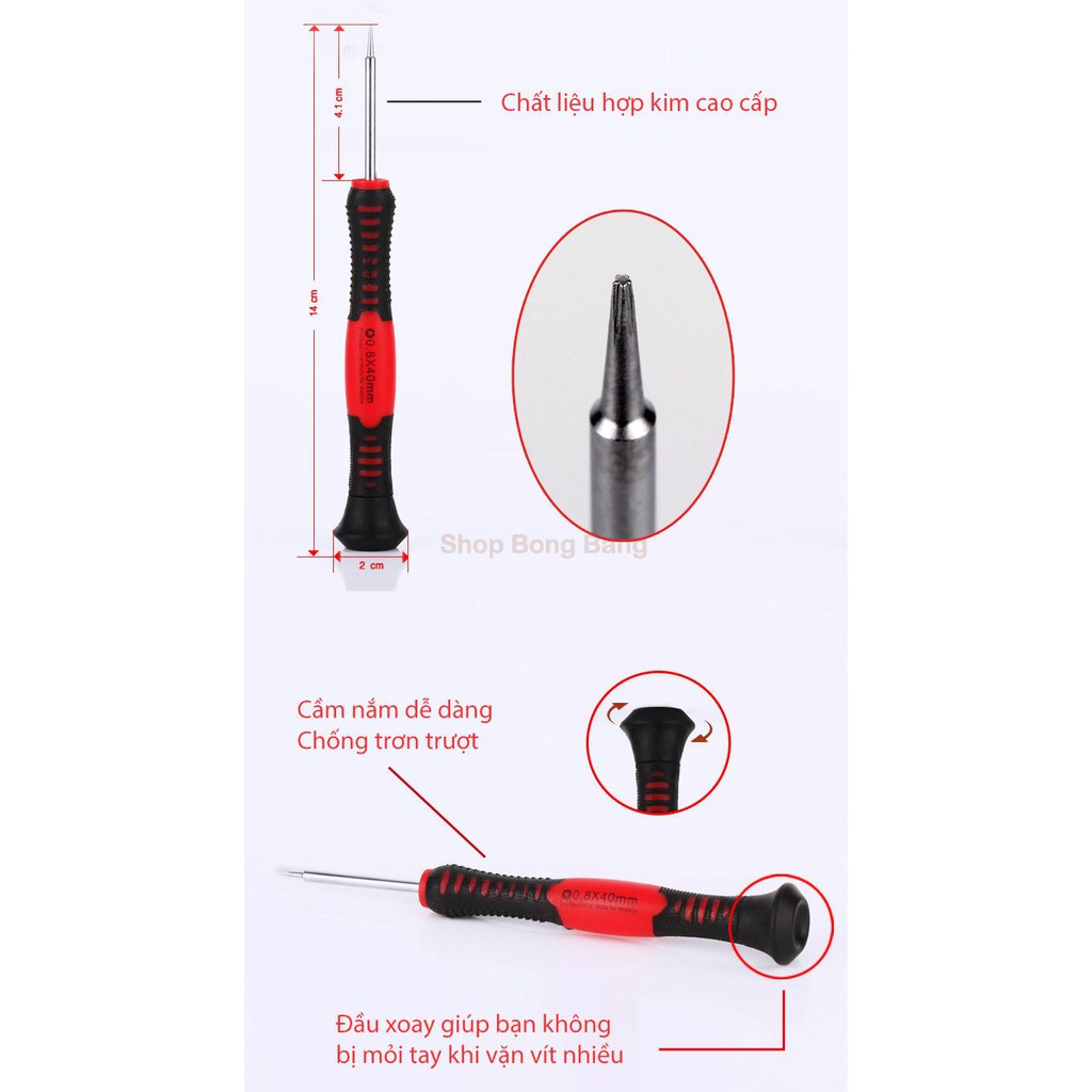 Bộ tua vít và dụng cụ sửa chữa điện thoại đa năng 16 món phù hợp sửa chữa hầu hết cho điện thoại của các hãng như: HTC/ Apple iPhone iPod itouch iPad / Nokia / Sony/Ericsson /Samsung / Blackberry / Mororola / PDA / LG / PC / MID etc. Với chất liệu cao cấp và thiết kế nhỏ gọn dễ dàng mang theoBộ sản phẩm bao gồm 8 tua vít với các đầu: T5 T6 0.8★ 1.2★ -2.0 +1.5 +1.2, và Y0.6 và nhíp gắp, lạy màn hình, nam châm tĩnh điện...Giúp bạn linh hoạt hơn rất nhiều trong công việc sửa chữa chỉ với 1 bộ sản phẩm được thiết kế gọn gàng hợp lý và tỉ mỉ.