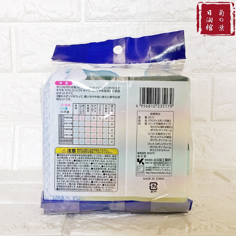 Túi 06 miếng mút rửa chén bát Kokubo nhập khẩu từ Nhật Bản, sản xuất tại Trung Quốc
