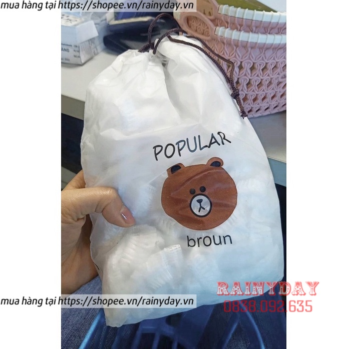 Túi 100 màng bọc thực phẩm co giãn con gấu có bo chun nilon PE nylon bảo quản thức ăn đa năng