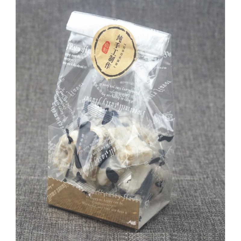 👉🏻 Túi đựng bánh kẹo chất liệu inlon trong veo in chữ Anh màu trắng kèm đế giấy vàng óng ánh, có thể đựng nhiều thể loại thực phẩm nhìn rất sang👉🏻 Kích thước: 23*8.5*6cm (200gr tùy loại)