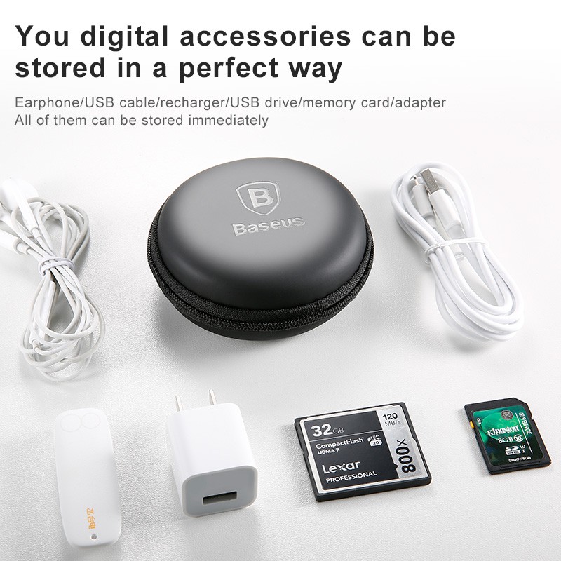 Điện Thoại & Phụ Kiện > Phụ kiện > Thẻ nhớ || Túi Baseus thân cứng mini đựng tai nghe/cáp sạc USB/thẻ nhớ SD TFCòn hàng