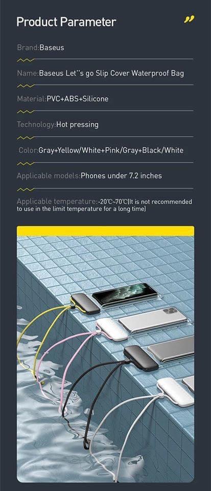 Giới thiệu Túi chống nước cho điện thoại Baseus Let''s go Slip Cover Waterproof Bag ( tích hợp cho máy 7.2 inch trở xuống )