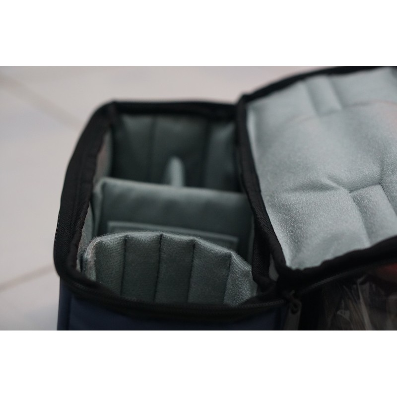 sức chứa của túi : 1 body + 2lens và phụ kiện.