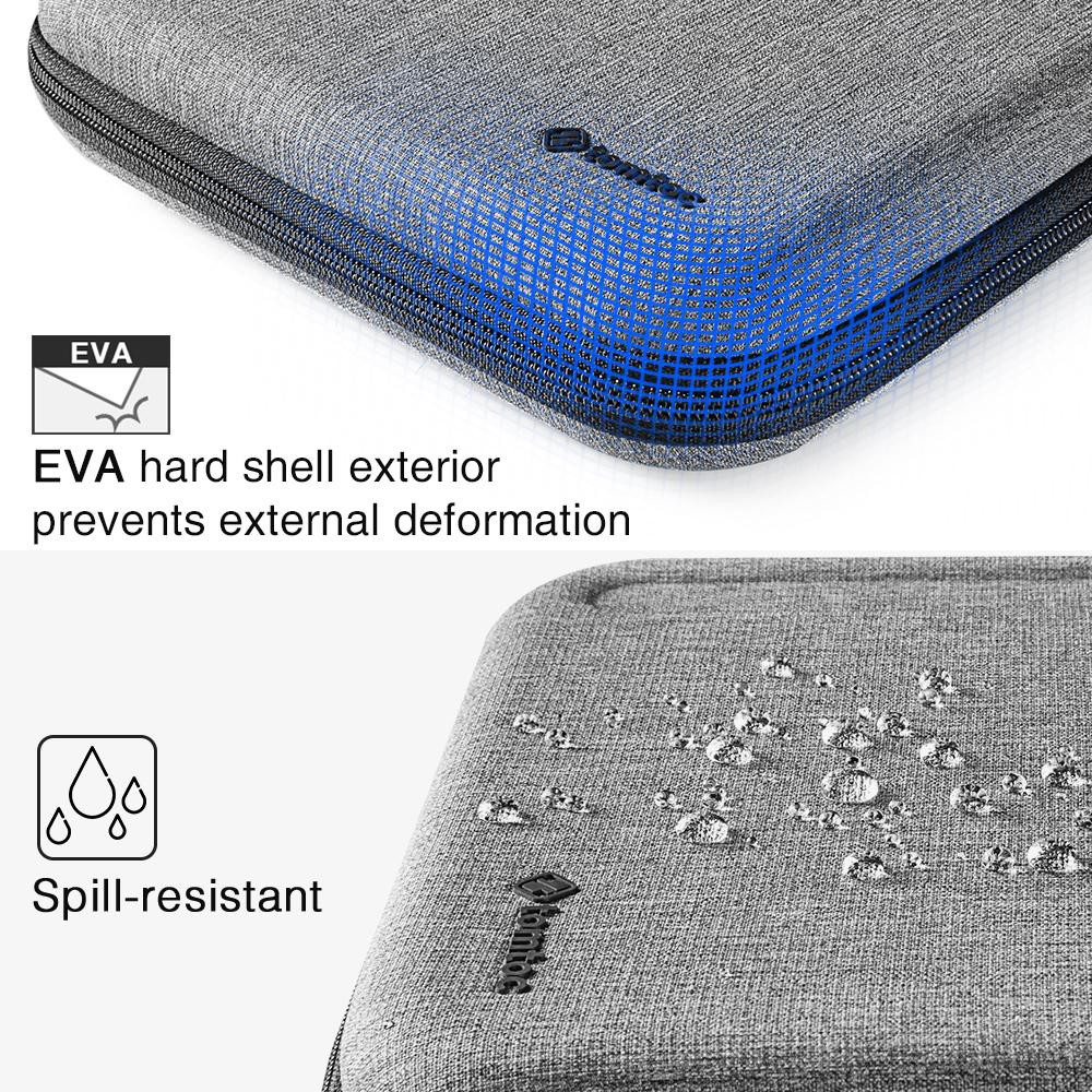 - Dung lượng lớn: Có 4 dây đai đàn hồi để đựng cáp USB, tai nghe và nhiều phụ kiện nhỏ hơn. Có ngăn đựng thẻ tín dụng và Hộ chiếu, bên trong có 1 ngăn lưới có khoá kéo để chứa các vật dụng khác.Bên ngoài được làm từ vỏ cứng EVA tránh túi bị biến dạng, ngoài ra vải bên ngoài túi còn làm từ vật liệu chống thấm nước.