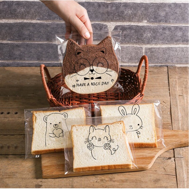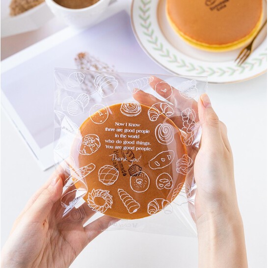 Nhà cửa & Đời sống > Dụng cụ chăm sóc nhà cửa > Túi nilon & túi rác || Túi Dán Nilon Đựng Bánh Mì Ngọt In Hình trong suốt (100 cái) dài 18cm, ngang 15cm, dán miệng 3cmCòn hàng