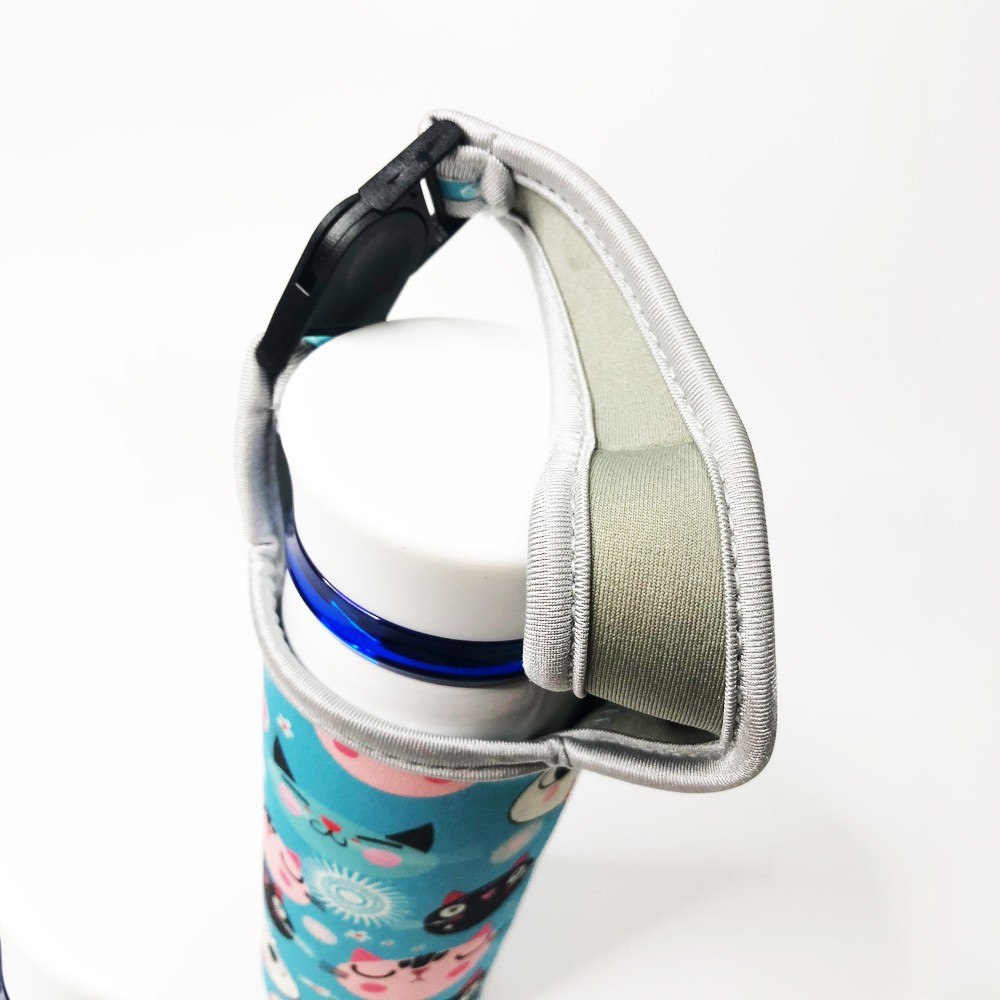 - Chất liệu: Vải polyester và su tổng hợp co giãn tốt, bảo vệ bình nước của bạn khỏi bị hư hại, trầy xước. Đường may chắc chắn