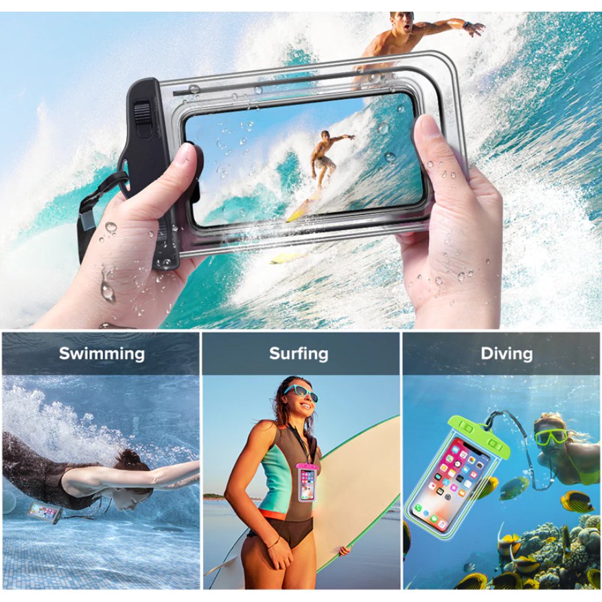 ☑️ Túi được làm từ chất liệu nhựa dẻo trong suốt, có tính năng cảm ứng nhiệt, giúp người dùng có thể sử dụng điện thoại để nghe, nhận cuộc gọi cũng như chụp ảnh dưới nước.
