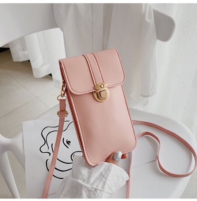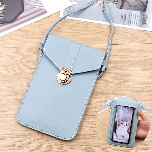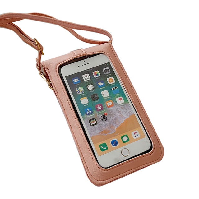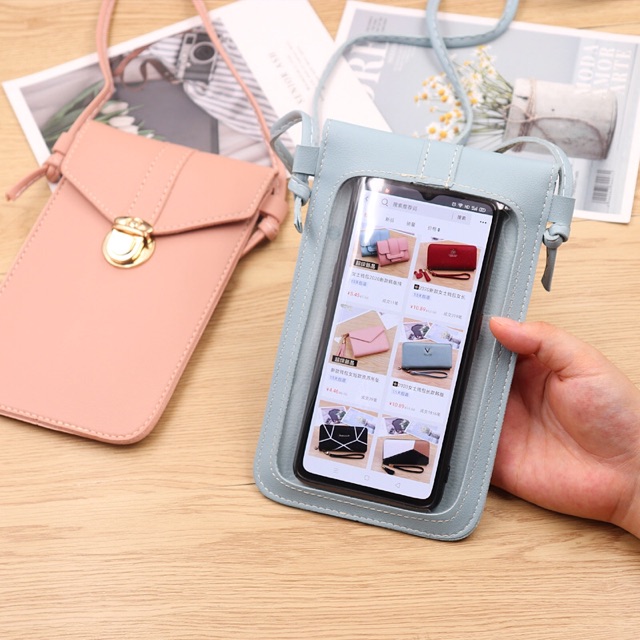 Túi đựng điện thoại đeo chéo, túi da PU có mặt trong suốt sử dụng được màn hình cảm ứng