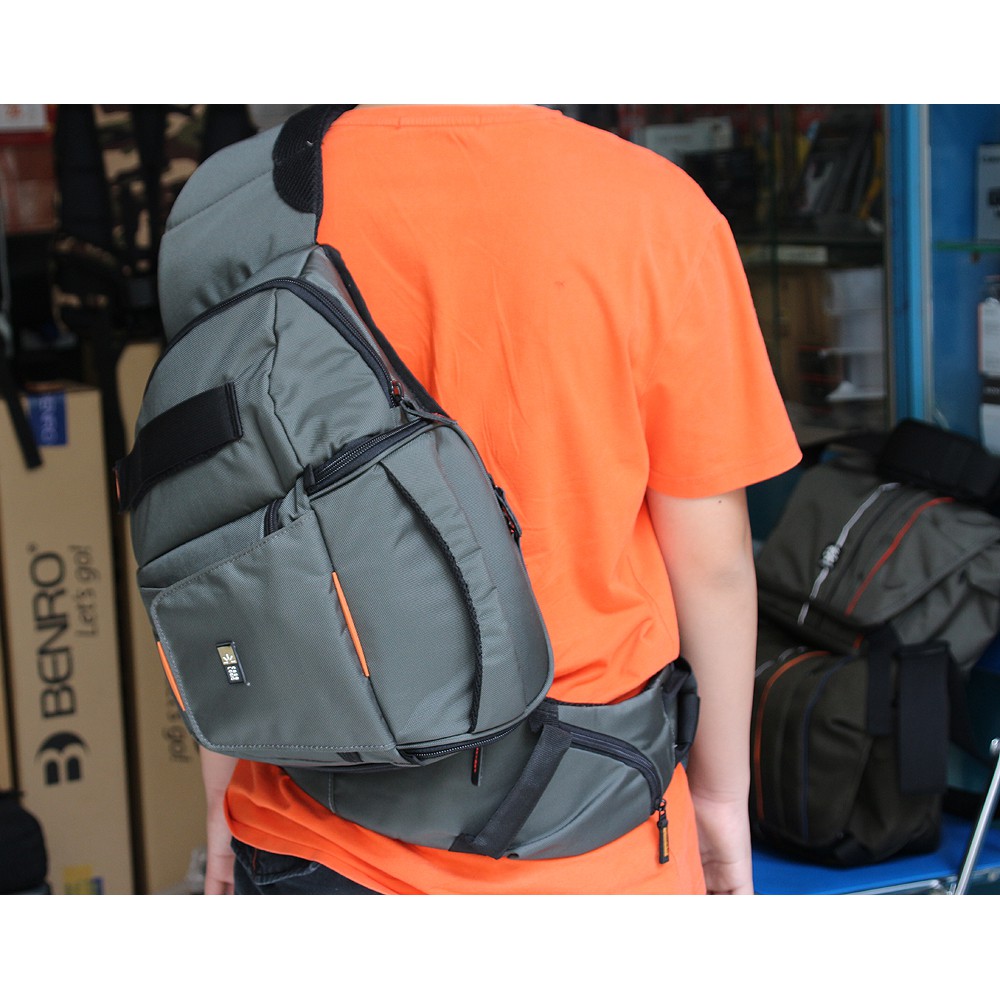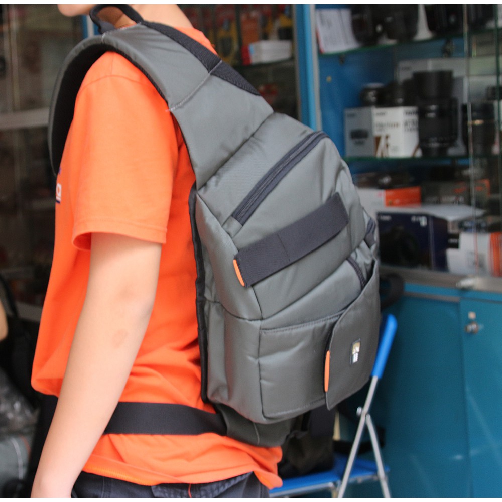 Ở Ngăn chính có quai cách tay. Ngăn đó ta để 1 body và gắn sẵn 1 ống kính rồi bỏ vào.