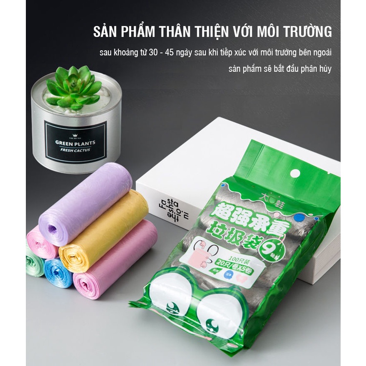 Túi đựng rác được thiết kế bằng chất liệu nhựa dễ dàng phân hủy giúp túi dễ dàng phân hủy hoàn toàn mà không ảnh hưởng đến môi trường