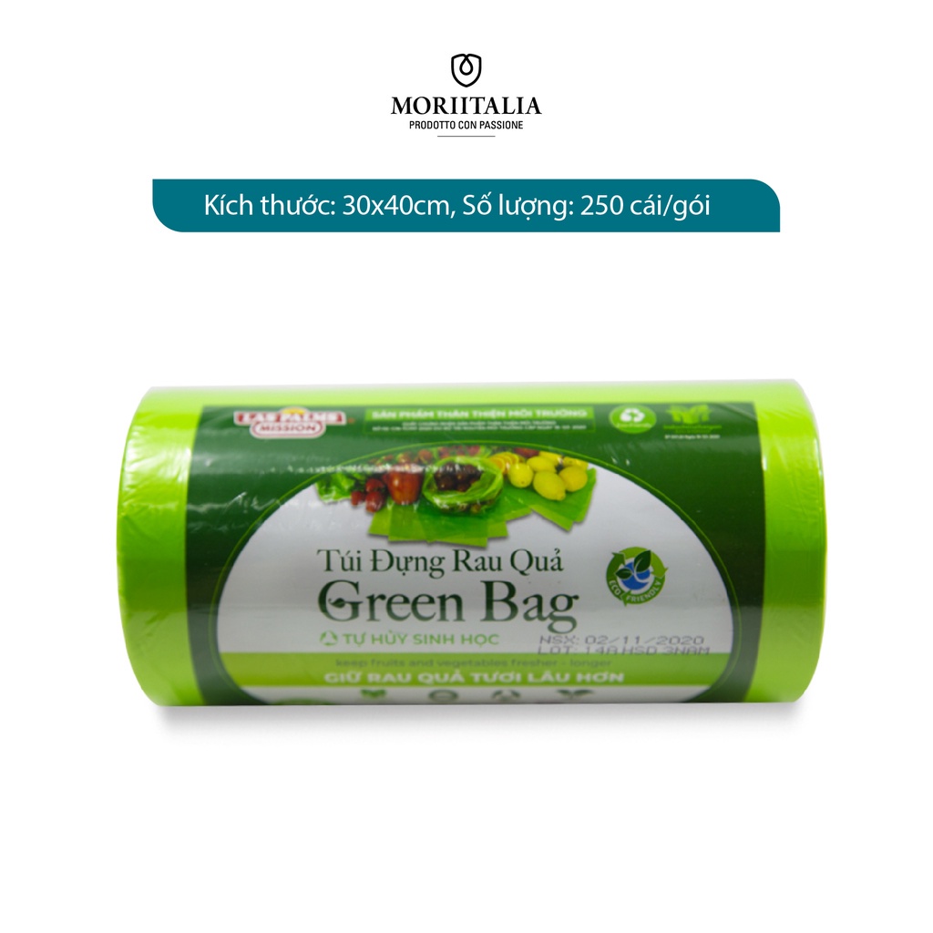 - Túi đựng rau quả Green Bag thương hiệu Laspalms là loại túi nilon phân hủy sinh học, không gây ô nhiễm môi trường như các loại túi nhựa thông thường.