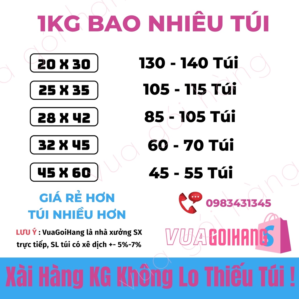 Kích thước 20x30cm phù hợp cho đóng gói đơn hàng phụ kiện nhỏ, ốp điện thoại, quần áo baby mỏng,...