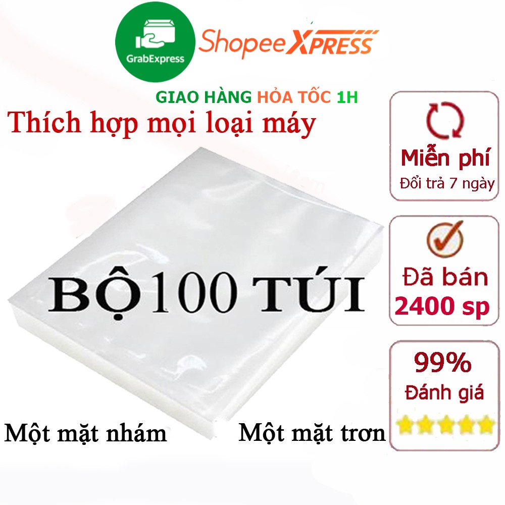 Giới thiệu túi hút chân không thực phẩm dành cho máy hút chân không 100 chiếc một mặt nhámTúi PA/PE hút chân không là các túi dùng để bảo quản thực phẩm bên trong và được xử lý theo công nghệ rút chân không bằng máy hút chân không chuyên dụng.Sau khi hút hết không khí,máy hút chân không có tác dụng hàn kín mép túi để không khí không bị tràn vào túi.Nhằm đảm bảo thời gian sử dụng của sản phẩm được lâu hơn, giữ được chất lượng nguyên thủy của sản phẩm bên trong, không bị không khí môi trường làm ảnh hưởng tới chất lượng sản phẩm, thực phẩm.