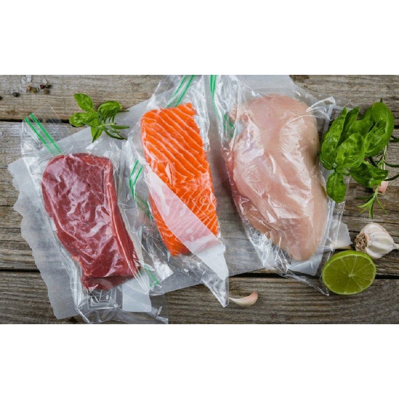 Nếu bạn là nội trợ, thường xuyên đi siêu thị sẽ thấy ở các quầy đông lạnh, túi hút chân không được sử dụng nhiều để đựng các thực phẩm tươi sống như: rau củ, thịt, cá,… Các thực phẩm này đựng trong túi hút chân không giúp kéo dài thời gian sử dụng lên tới 3 lần và giúp chúng giữ được hương vị lâu hơn.