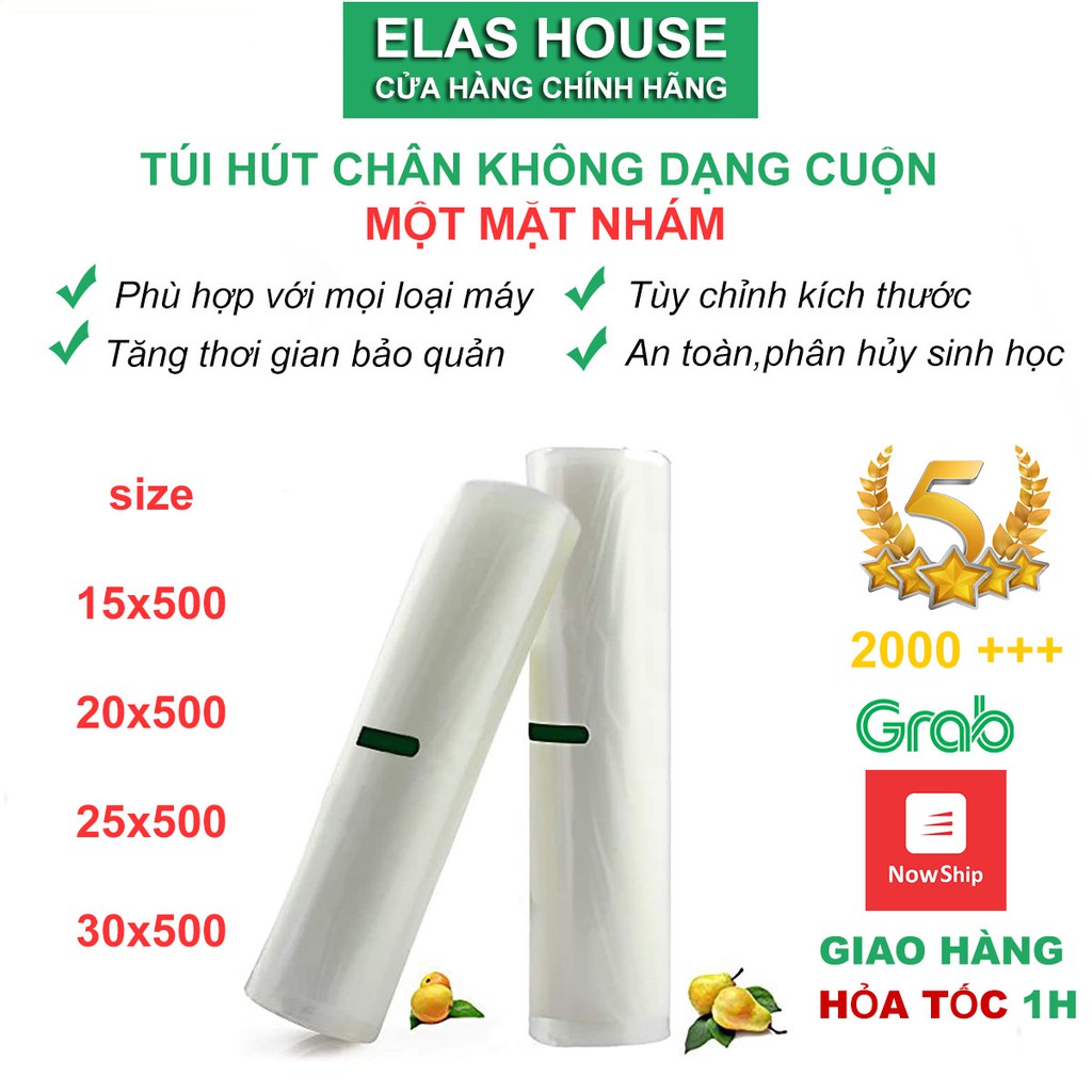 Túi hút chân không thực phẩm một mặt nhám dạng cuộn ELASHOUSE kích thước 25x500