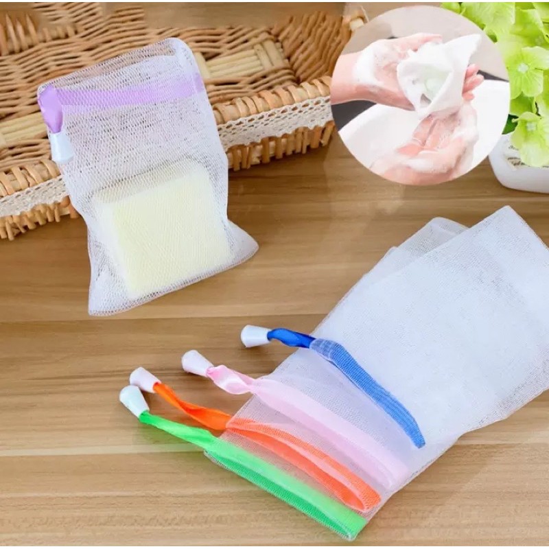 Nhà Cửa & Đời Sống > Dụng cụ & Thiết bị tiện ích > Bao bì, túi đựng || Túi lưới đựng xà bông tạo bọt tiện lợi, 2 lớp, có dây rút nhiều màuCòn hàng