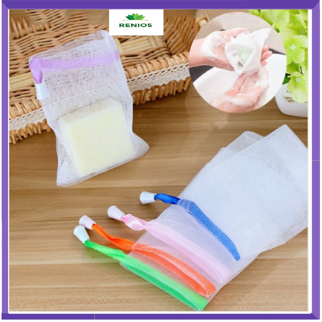 Túi lưới tạo bọt xà phòng tắm dây nhiều màuKÍch thước 9.5cm*15cm Sử dụng túi lưới Giúp Xà Phòng Handmade ra được nhiều bọt hơn so với khả năng tạo bọt bằng tay.