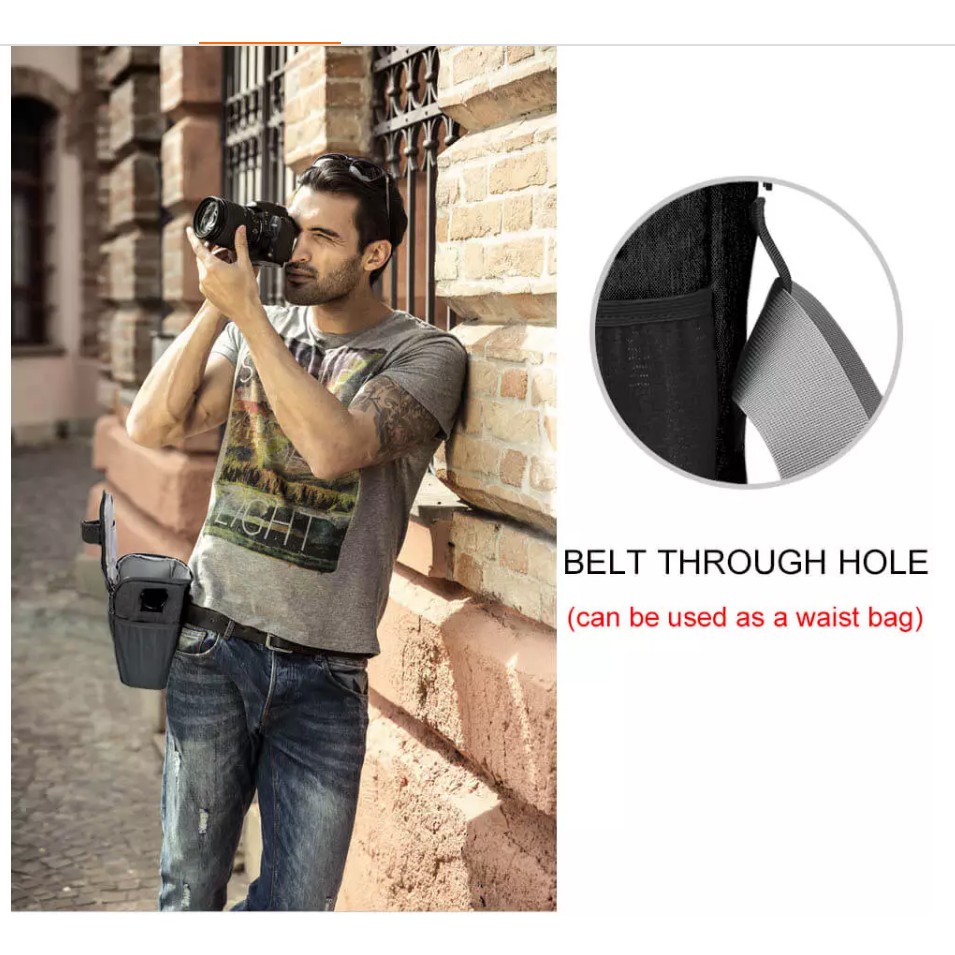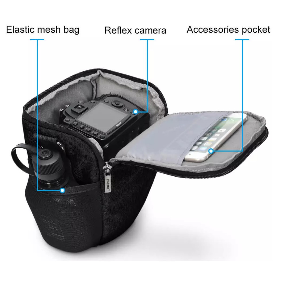 Cấu tạo của túi cho phép bạn bảo quản dễ dàng một chiếc Body kèm một Lens liền, thiết kế trang nhã với những vách ngăn dày. Vỏ ngoài của túi được làm bằng chất liệu polyester chống thấm cao cấp, chống va đập
