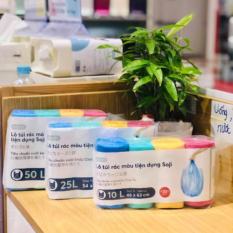 Nhà cửa & Đời sống > Dụng cụ chăm sóc nhà cửa > Túi nilon & túi rác || Túi rác màu tự huỷ sinh học Inochi có quai sách tiện dụng dạng cuộn(bịch 4 cuộn)Còn hàng