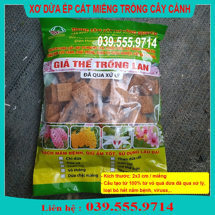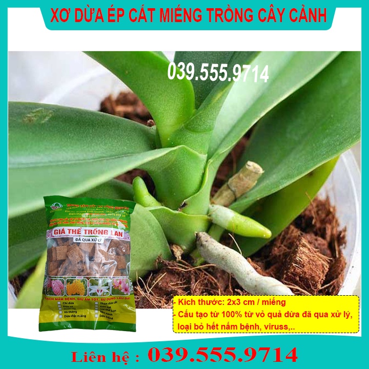 Vỏ dừa được cắt nhỏ kích thước khoảng 4-6cm và được xử lý mầm bệnh rất kĩ. Sản phẩm được dùng để làm giá thể trồng phong lan do đặc tính nổi trội của chúng nên hầu hết những người chơi phong lan đang rất ưa chuộng.Hướng dẫn trồng lan bằng xơ dừa