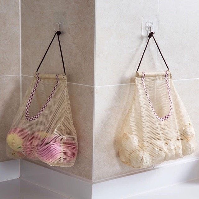 🌲Túi treo hành , tỏi vvKhông nên túi ni-lông đựng hành tỏi nữa ạ, kín hơi khiến hành tỏi ẩm mốc, mọc mầm hoặc thối.