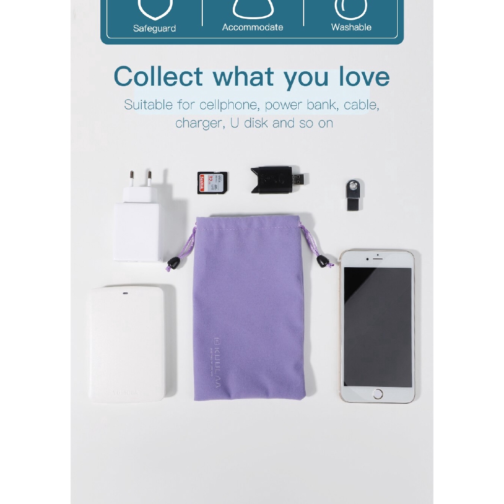 Giới thiệu Túi Vải KUULAA Đựng Sạc Dự Phòng Và Cáp USB Chống Thấm Nước Cho iPhone Samsung Xiaomi Huawei