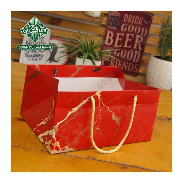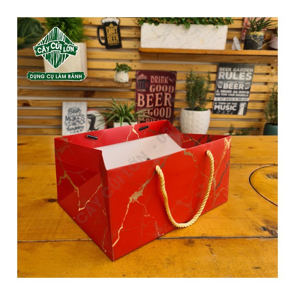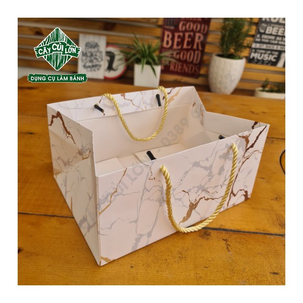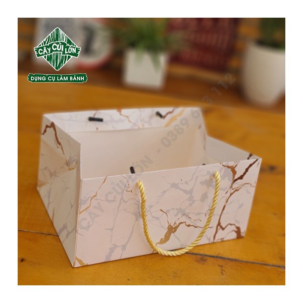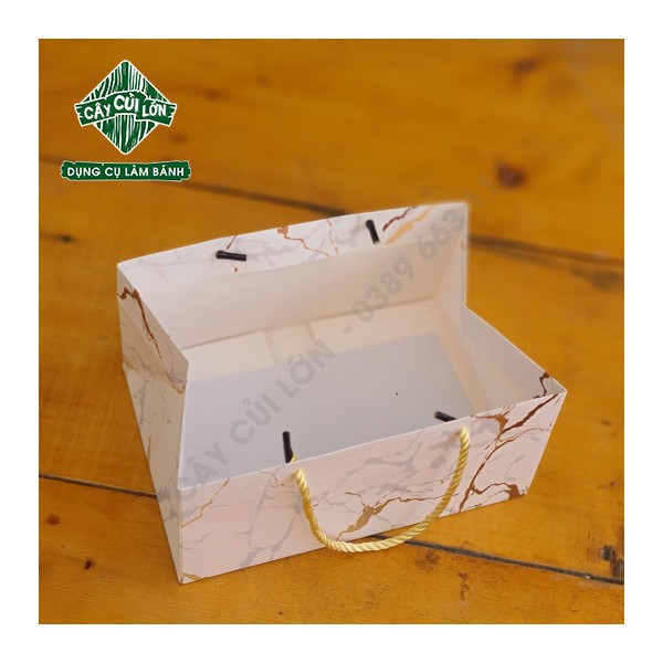 Túi xách giấy vân đá ngang để bánh kẹo luôn được cố địnhChất liệu giấy ivory , cán màng