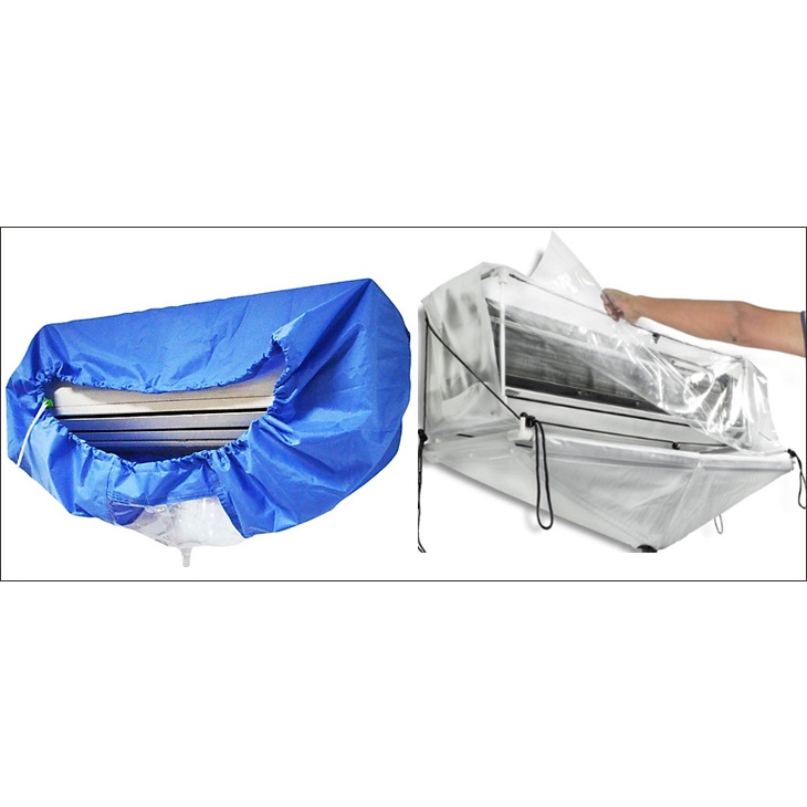 Khi muốn vệ sinh máy lạnh. Việc đầu tiên chúng ta cần là phải có sản phẩm áo vệ sinh máy lạnh, dùng1 xô nước hứng nước thải theo ống xã, và 1 vòi xịt nước là có thể tự mình bảo dưỡng máy lạnh cho gia đình Dùng dây (dây điện loại sợi đơn cũng được ạ)luồn trên miệng áo vệ sinh có thun co giản, sau đó treo áo vệ sinh trùm phía dưới máy lạnh, kéo miệng áo ra phía ngoài và đưa vòi xịt vào, nước và bụi bẫn sẽ theo đường ống đi vào xô đặt phía dưới. ==> Tiết kiệm chi phí được rất nhiều.Chất liệu vải dù, bền, đẹp, màu xanh đen, miệng áo rộng 1.8m +đuôi dài 2.5m.