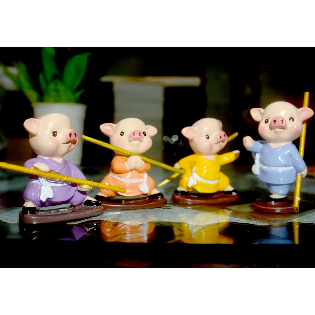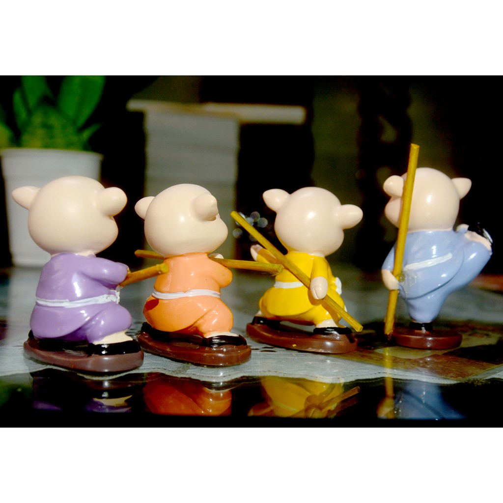 Bộ tượng 4 chú heo múa gậy ngộ nghĩnh cao 8cm
