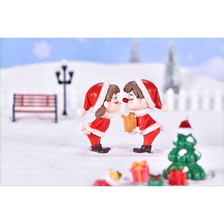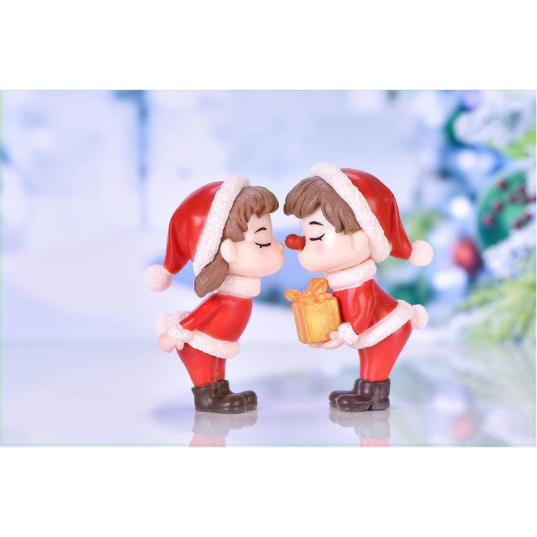Tượng Cặp Đôi Giáng Sinh hôn nhau trang trí tiểu cảnh Giáng Sinh, Xmas terrariumGiá 28k 1 cặp