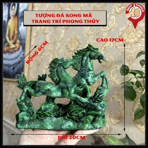 | Model | Tượng đá trang trí Ngựa phong thủy - Tượng đá song mã phong thủy để bàn làm việc - Màu xanh lục bích - Dài 20cm |