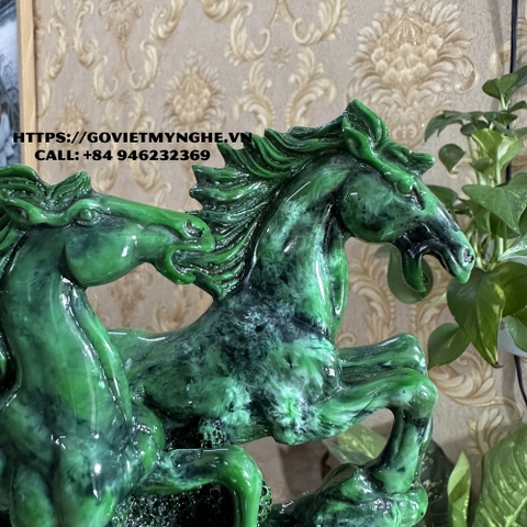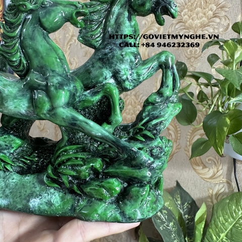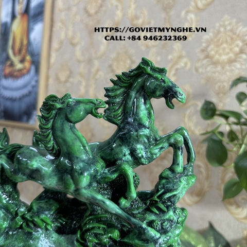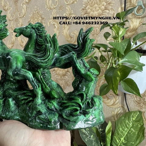 Tượng đá trang trí Ngựa phong thủy - Tượng đá song mã phong thủy để bàn làm việc - Màu xanh lục bích - Dài 20cm