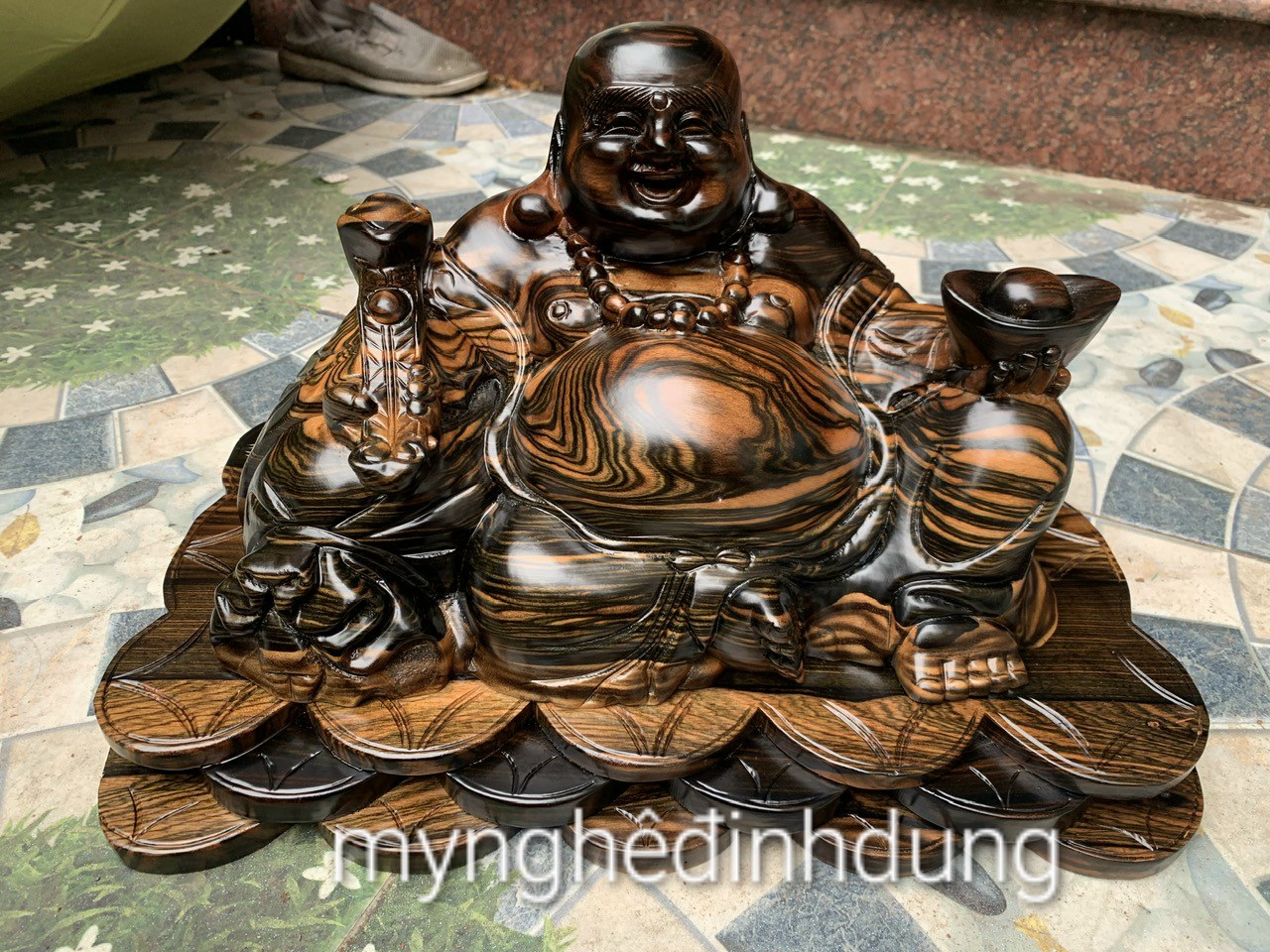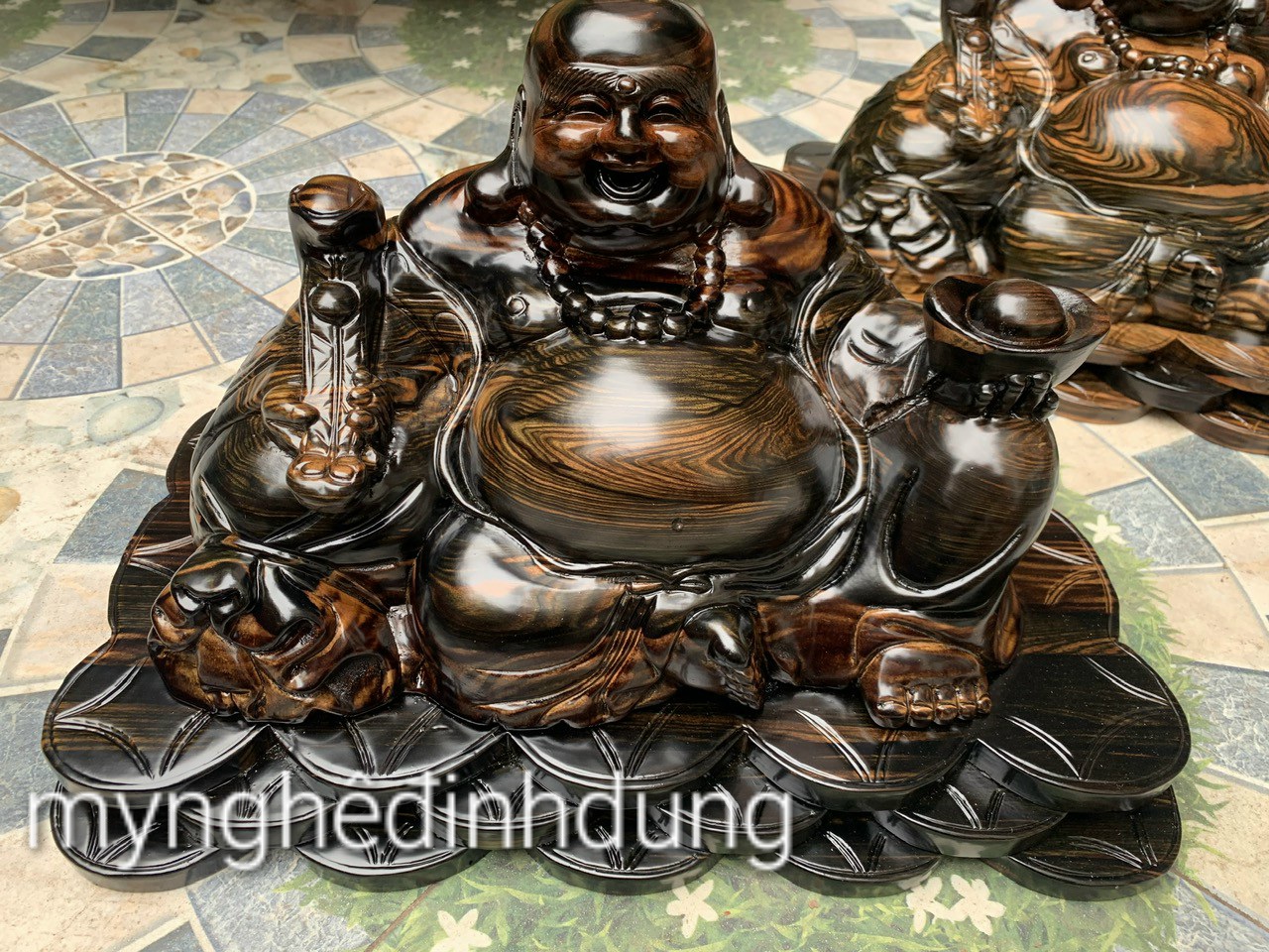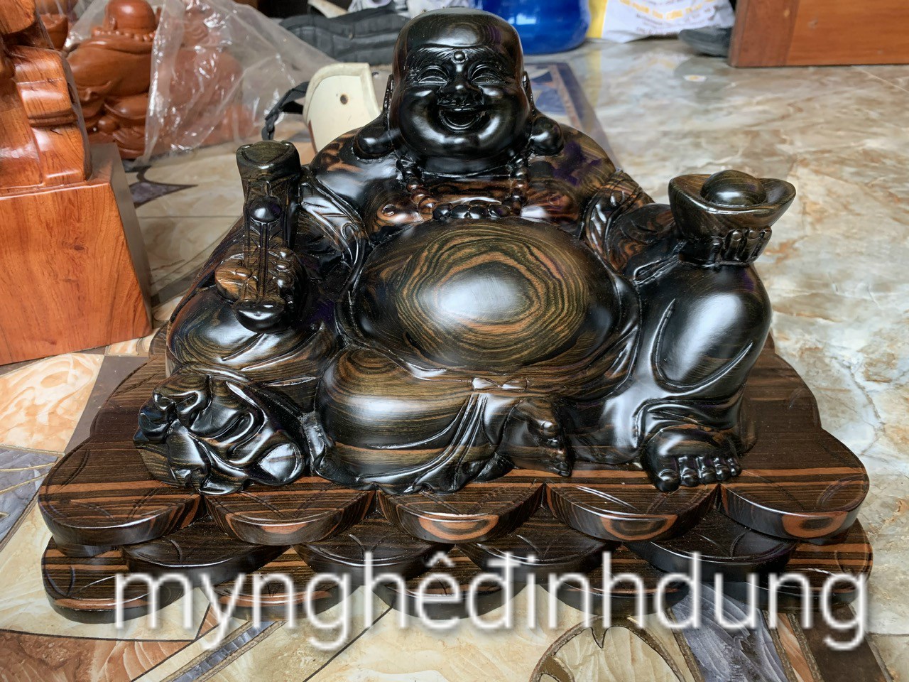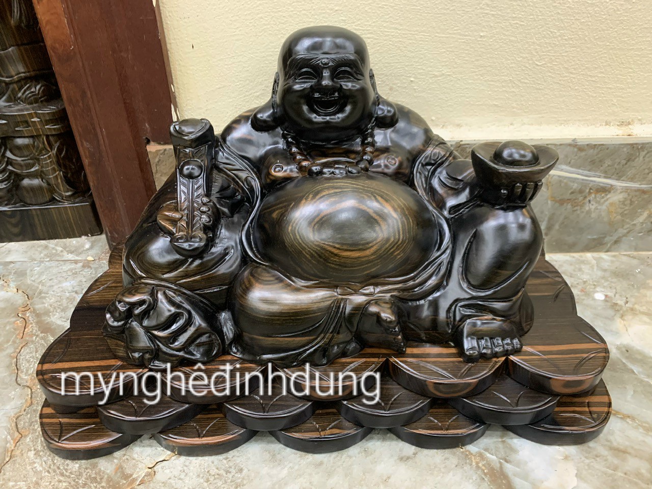 _ Tượng phật di lặc dâng thỏi vàng được làm bằng chất liệu gỗ mun hoa tự nhiên 100%
