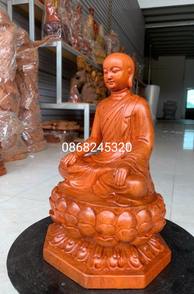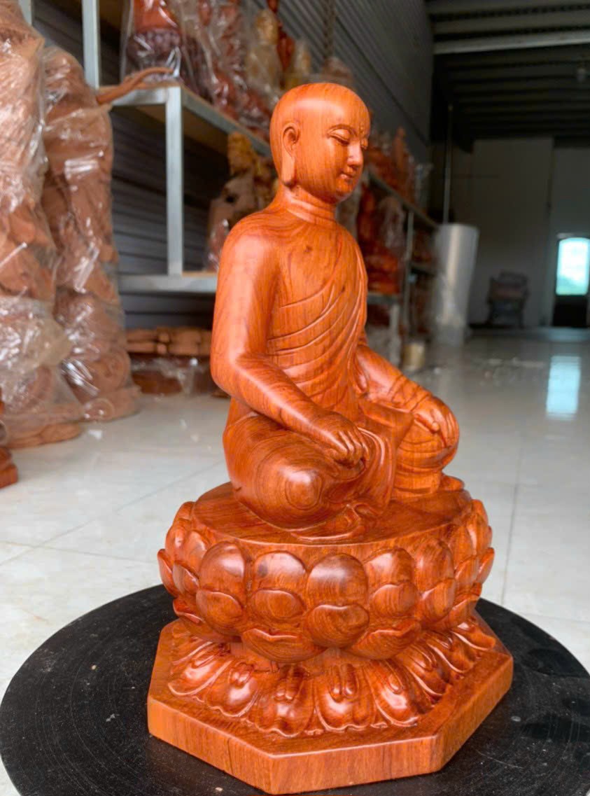 Giới thiệu Tượng phật hoàng trần nhân tông bằng gỗ hương đá kt cao 30×19×14cm