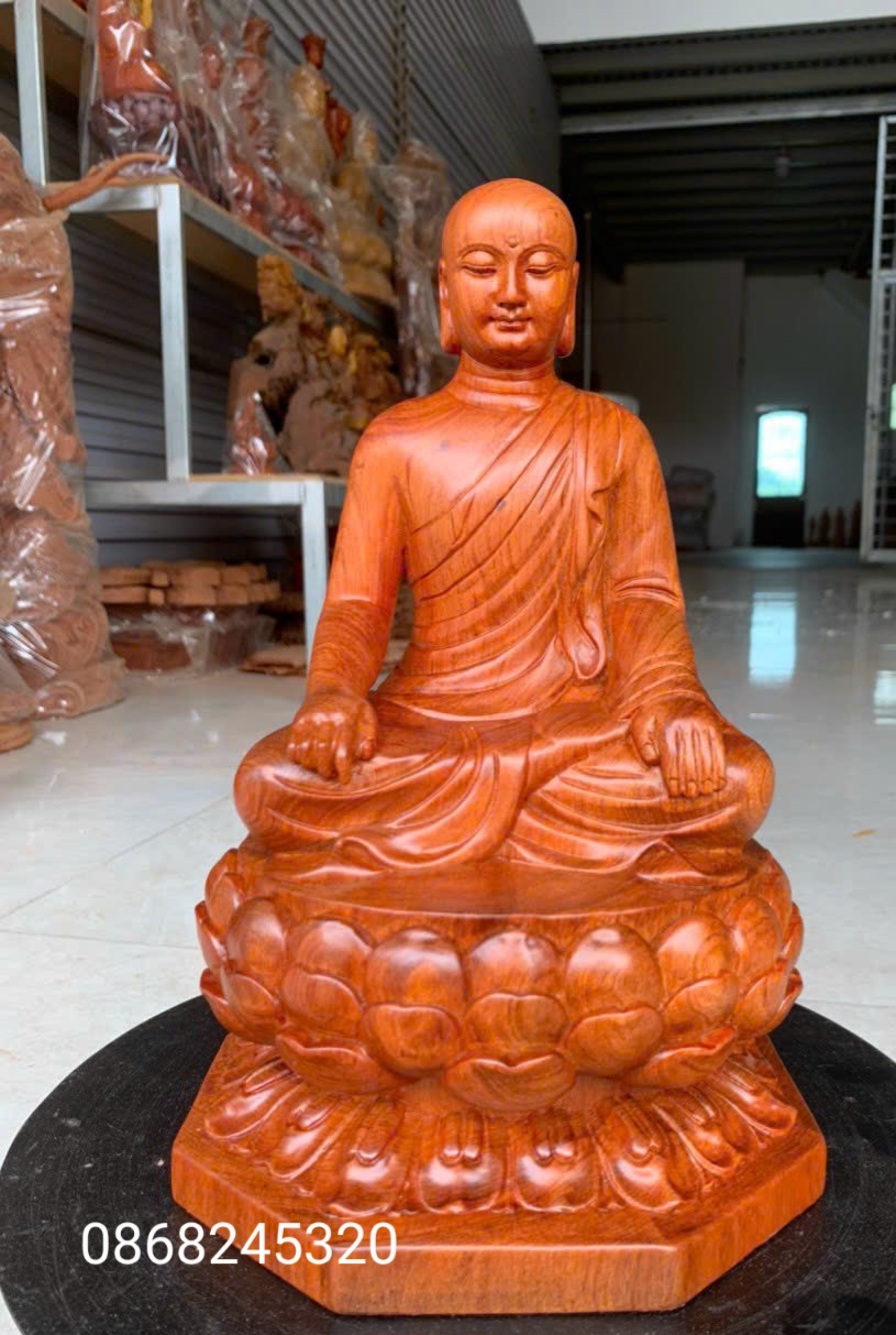 _ Tượng phật hoàng trần nhân tông được làm bằng chất liệu gỗ hương đá liền khối tự nhiên 100%