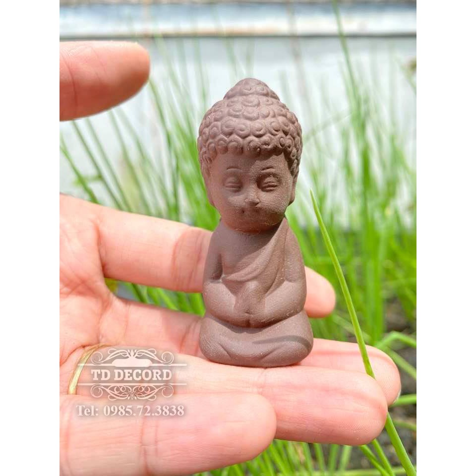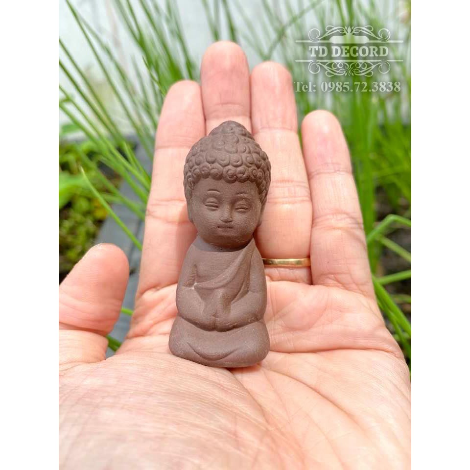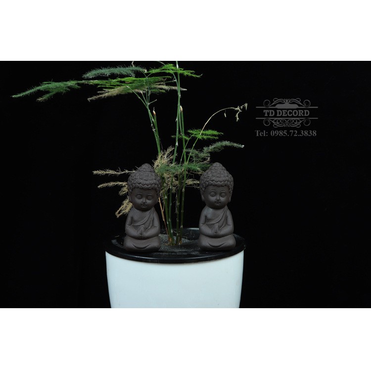 Tượng Phật Mini Bằng Gốm Trang Trí Tiểu Cảnh, Hồ Cá✅ Màu sắc: Nâu Đen