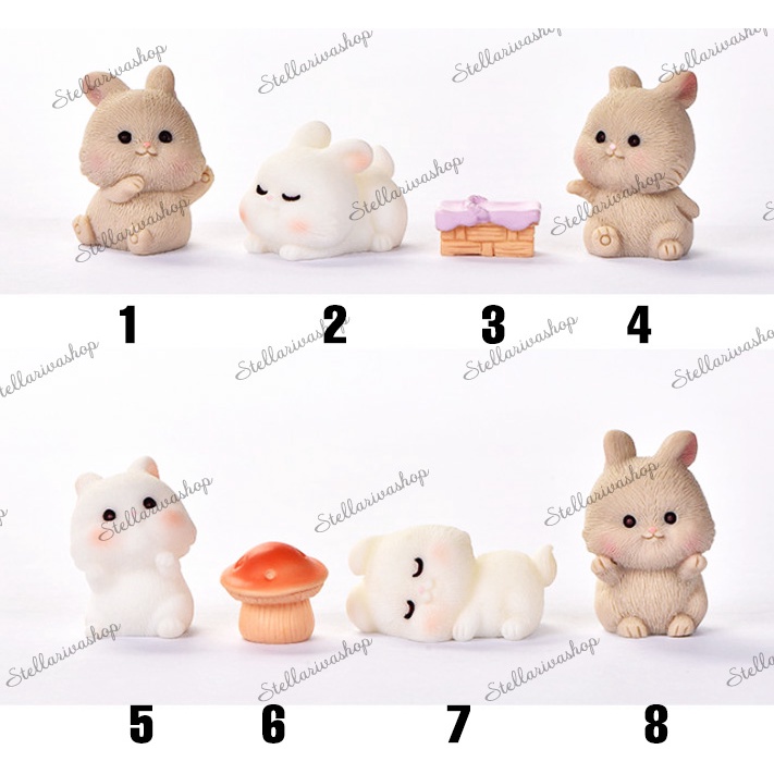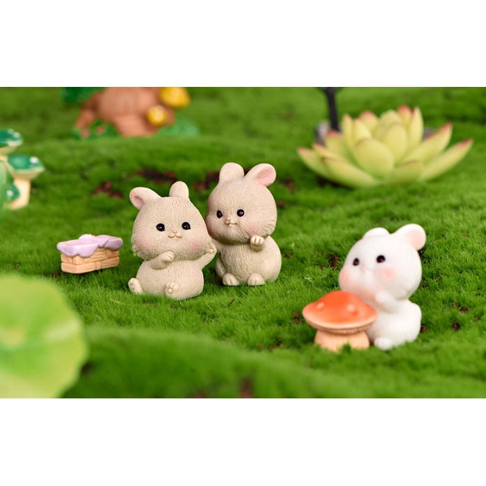 Tượng thỏ béo đi dã ngoại trang trí tiểu cảnh chậu cây, terrariumsize ~3-4cm