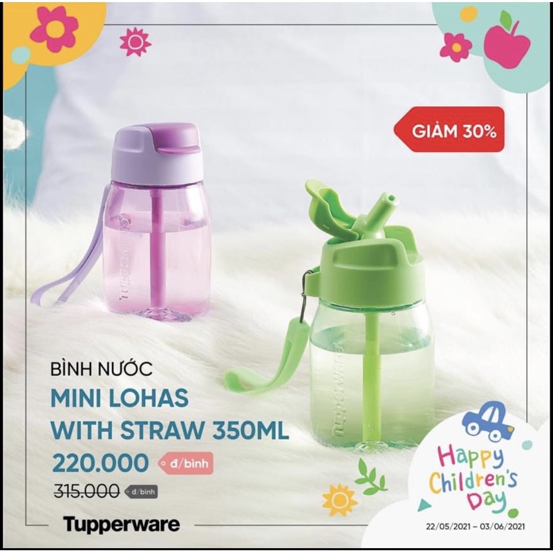 Nhà cửa & Đời sống > Bộ đồ bàn ăn > Bình nước & phụ kiện || Tupperware Bình nước Mini Lohas with straw có ống hútCòn hàng