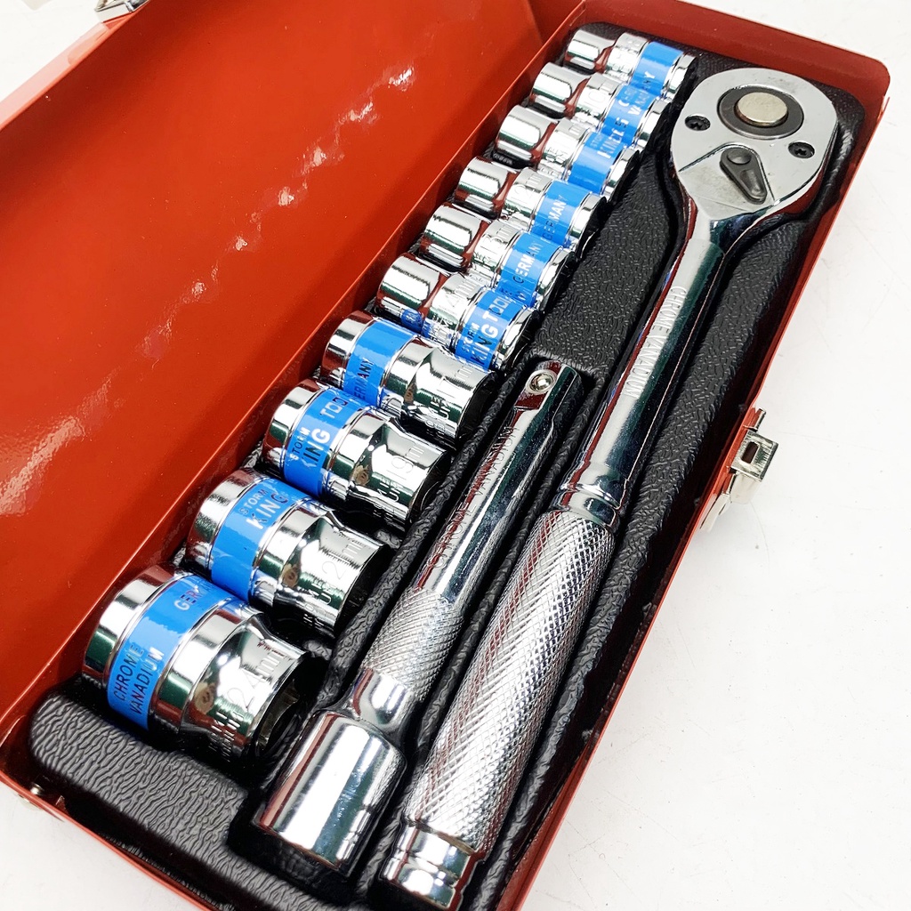 Nhà cửa & Đời sống > Dụng cụ & Thiết bị tiện ích > Dụng cụ > Hộp dụng cụ cầm tay || Bộ tuýp 12 chi tiết 1/2" King Tools 8-24mm, cần siết tự động, típ nối 1/2", công tắc đảo chiềuCòn hàng