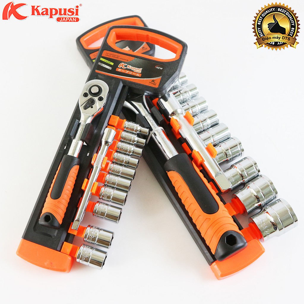 Nhà cửa & Đời sống > Dụng cụ & Thiết bị tiện ích > Dụng cụ > Hộp dụng cụ cầm tay || Bộ tuýp, bộ khẩu sửa chữa Kapusi Japan 12 chi tiết, thép cứng CR-V, cần tự động có nút nhấnCòn hàng