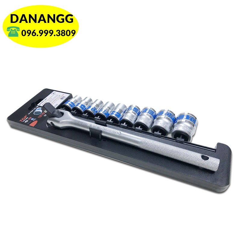 Bộ đầu tuýp 1/2" gồm 9 size khác nhau: 8, 10, 12, 13, 14, 17, 19, 22, 24mm, được chế tạo bằng thép CR-V, chịu lực cao, và được phủ 1 lớp xi cao cấp sáng bóng. Trên mỗi đầu tuýp được khắc thương hiệu TOP–Germany Standard, và quy cách size giúp dễ nhận biết khi dùng.