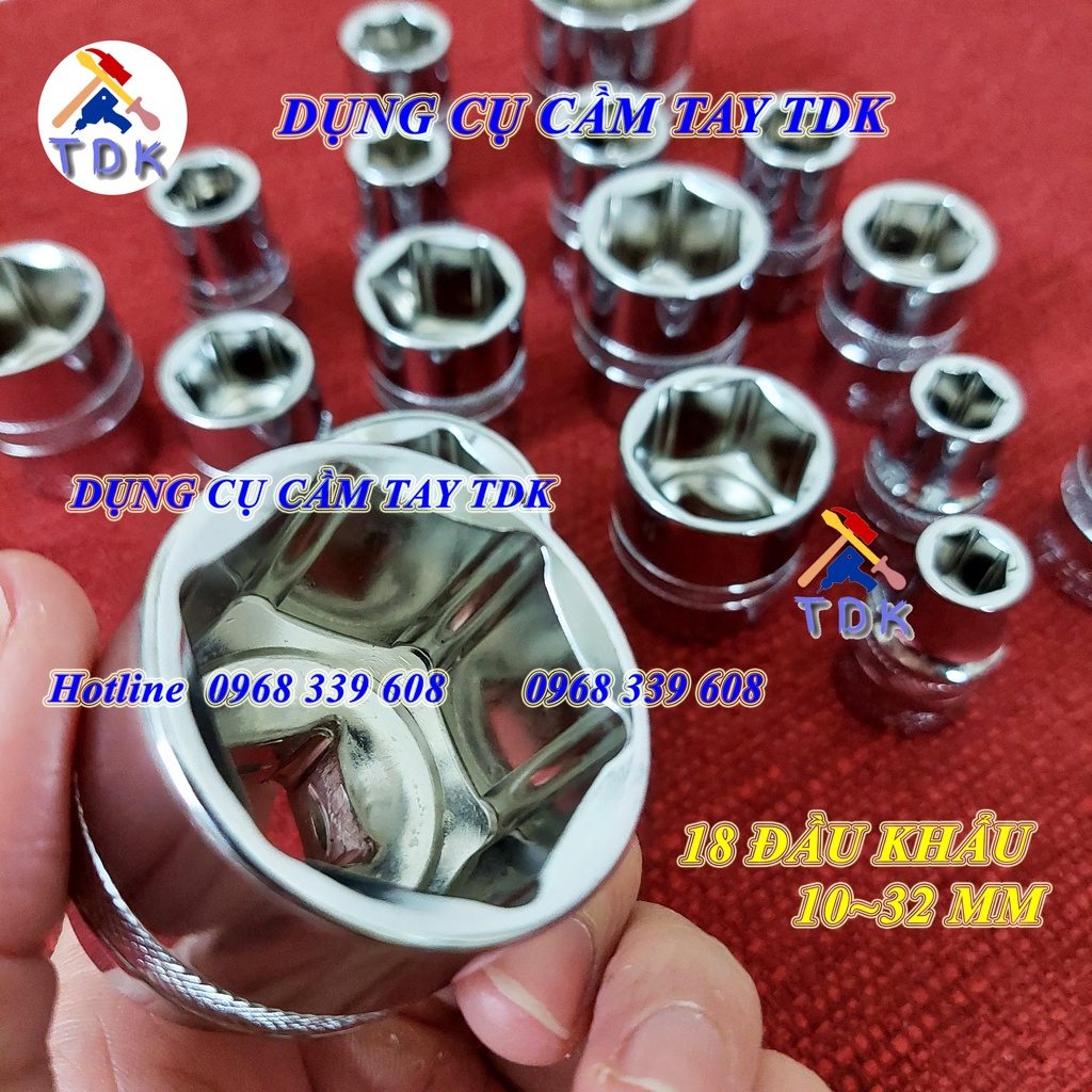 👉 18 đầu tuýp: 10, 11, 12, 13, 14, 15, 16, 17, 18, 19, 20, 21, 22, 23, 24, 27, 30, 32 mm