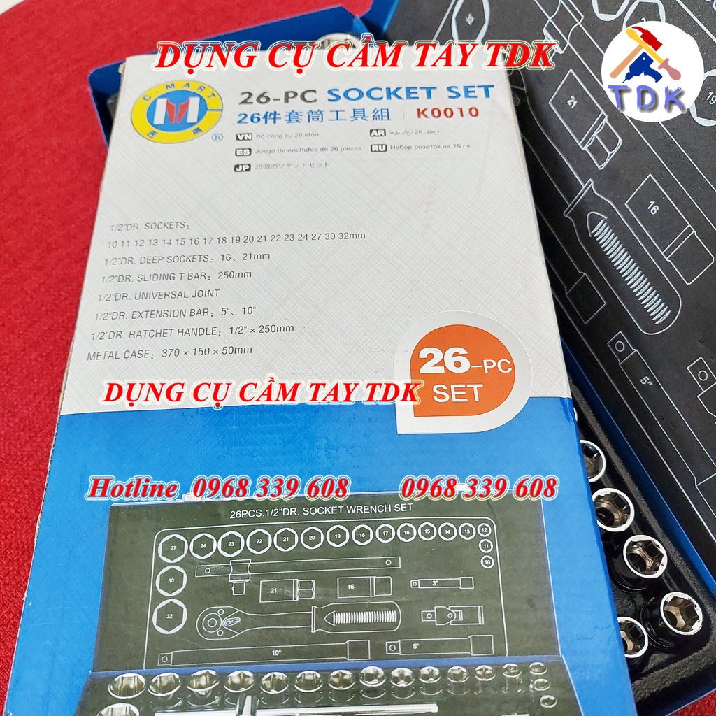 Bộ tuýp khẩu 26 chi tiết K0010 CMART hàng nhập Đài LoanThương hiệu: CMART