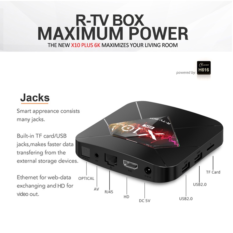 Thiết Bị Điện Gia Dụng > Tivi & Phụ kiện > Tivi box & Đầu thu kĩ thuật số || Tv box ram 4G Bộ nhớ 32G xem phim 6K tivi box hỗ trợ tìm kiếm bằng giọng nói bảo hành 12 tháng X10 PLUS android boxCòn hàng