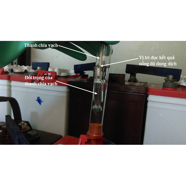 Trong quá trình kiểm tra bình Acquy, sử dụng tỷ trọng kế đo nồng độ axit H2SO4 có thể biết được phần nào tình trạng sử dụng của bình Acquy