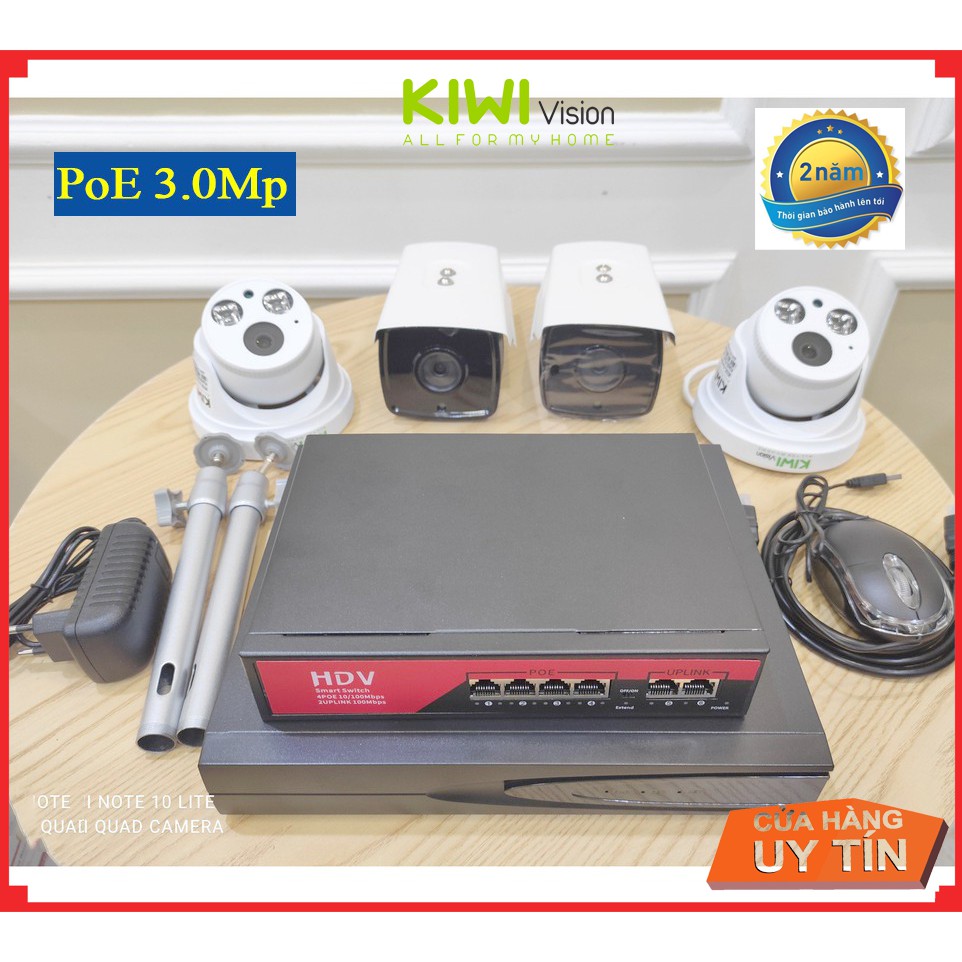 Bộ Đầu Ghi + Mắt Camera IP POE có màu,Thu Âm, Chuẩn Nén H265 ,Soi Đêm Siêu Nét 3.0MP , BH 24 Tháng TẶNG hộp kỹ thuật