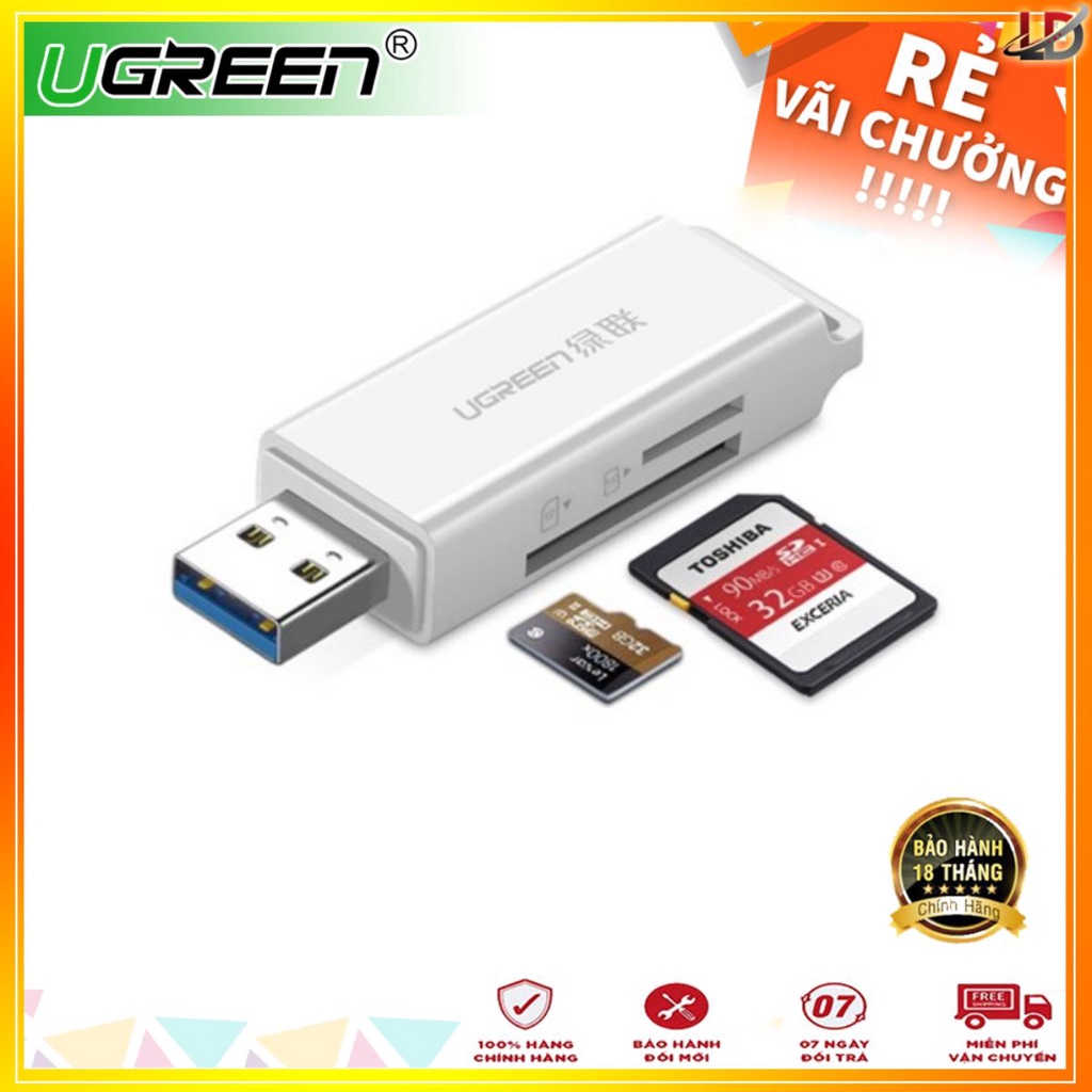 Ugreen 40753 - Đầu đọc thẻ nhớ SD/TF chuẩn USB 3.0 (màu trắng) chính hãng - Phukienleduy