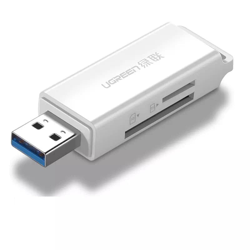 Đầu đọc thẻ nhớ SD/TF Ugreen 40753 chuẩn USB 3.0 cao cấp màu trắngĐầu đọc thẻ nhớ SD/TF Ugreen 40753 cao cấp là phụ kiện sử dụng để kết nối TF, Micro SD, Micro SDXC, Micro SDHC, M) // SD (SD, SDXC, SDHC với máy tính, laptop thông qua cổng USB 3.0 hỗ trợ tốc độ cao lên đến 5 Gbps